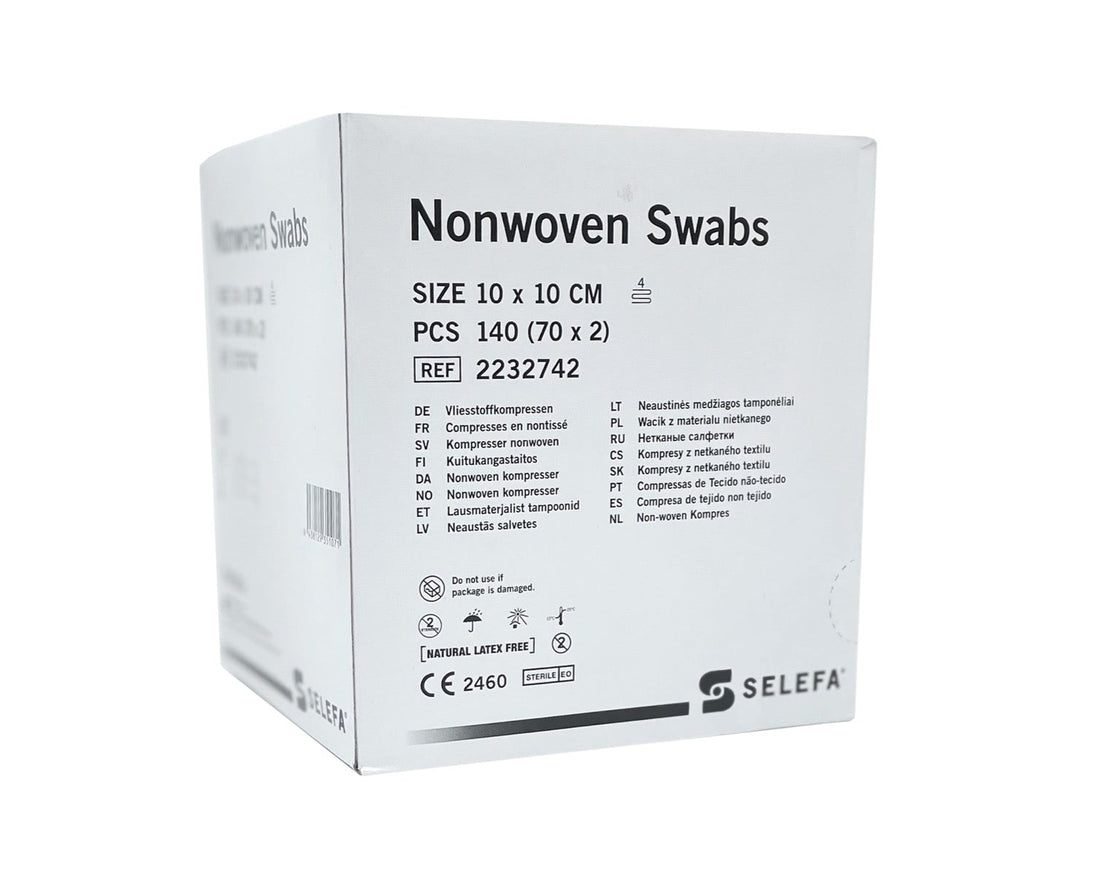 Sterile compress from Selefa in nonwoven, 10x10cm, 4 layers, 140pcs/pack.
